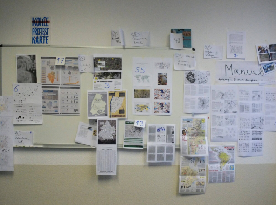 Both our activist experiences with collective and critical mapping workshops as kollektiv orangotango as well as our individual and academic engagements with maps served as starting points for Not-an-Atlas. In the spring of 2015 we released a Call for Maps in English, German and Spanish, inviting everyone engaged with practices of critical mapping to send us ideas, texts, photos and, of course, maps. We were overwhelmed by the resonance! Nearly 150 submissions found their way to us. Some of them came from places, struggles and activists we had not heard of before; others came from long-time companions and friends. Among them were contributions from well-known critical cartographers, activists, and social movements who have been working with maps for many years; but even more emerging mapmakers sent us their proposals. What followed were exciting three years of discussing, selecting and editing the various maps and projects. Again and again we had to ask ourselves: What actually makes a map (not) critical? And what do we (not) have in mind when working on a counter-atlas? We also had to continually negotiate between more activist and more academic modes of knowledge production – be it in regards to the content of the maps or in regards to our own mode of working and living. With the large number of submissions, Not-an-Atlas quickly outgrew its initial frame in terms of involved languages, time and resources. The resulting process of collective learning therefore included various challenges, personal fluctuations and surprises. There we started to think about an online version of Not-an-Atlas. So we understand notanatlas.org as a continuation of the Not-an-Atlas book. Because we want to continue to share maps, struggles, projects, texts and inspirations online.